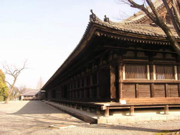 ![]() 本堂の西側 1月15日はここで通し矢がおこなわれる。説明 |
